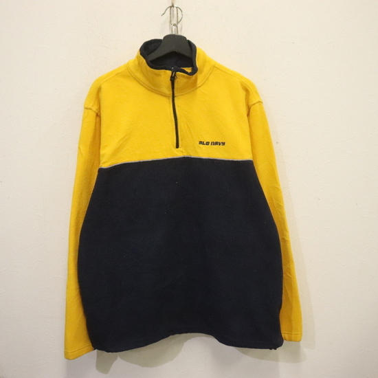> e987 2000年代製 OLDNAVY オールドネイビー フリースジャケット■00s 表記XLサイズ イエロー ネイビー 2トーンカラー ハーフジップ 古着