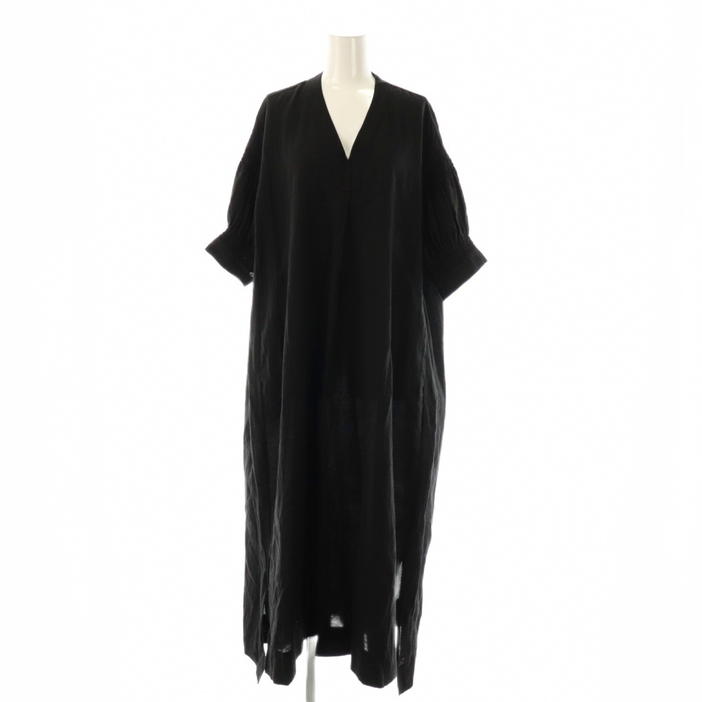 - クロシェ CLOCHE 半袖Vネックワンピース リネン混 2 ブラック /DO ■OS レディース
