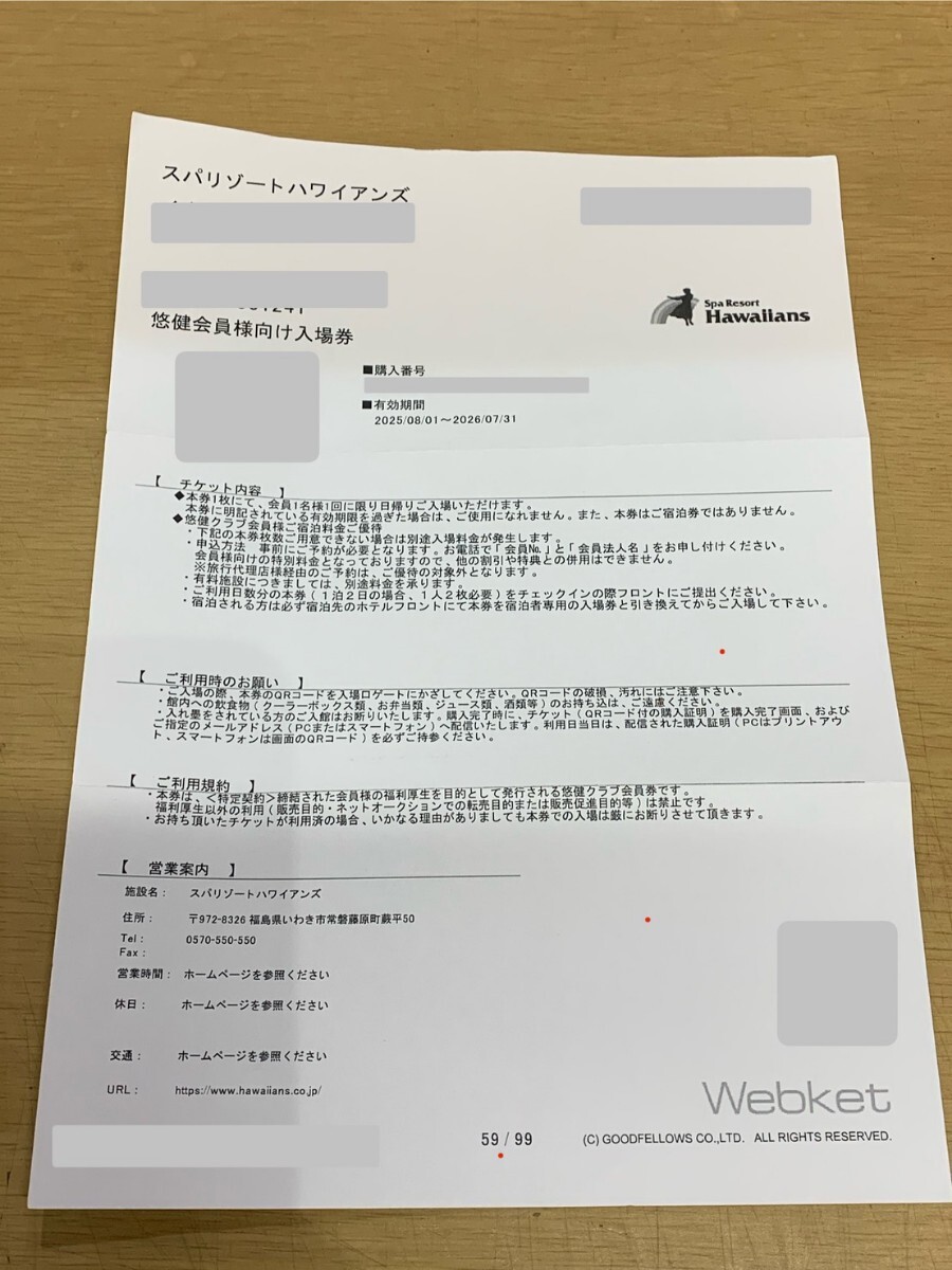 - スパリゾートハワイアンズ 入場券 優待券 有効期限 2026年7月31日まで 施設利用券 ②