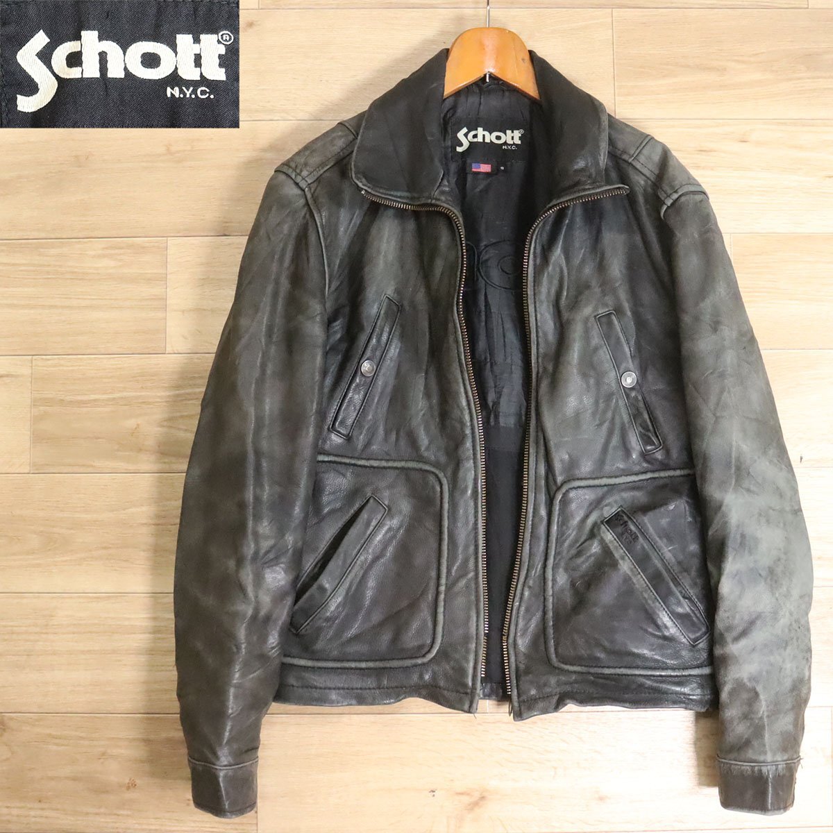 > Z7S/Y5.12-7 アメリカ古着 Schott ショット レザージャケット 本革 ライダース ボンバージャケット 革ジャン 皮ジャン Sサイズ