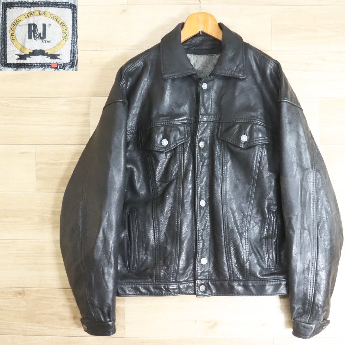 > M1R/Y5.7-2 ユーロ古着 R&J トラッカージャケット 本革 レザージャケット ライナー付き 革ジャン 皮ジャン XL メンズ