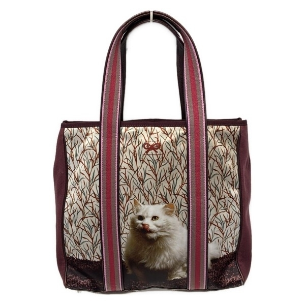 > アニヤハインドマーチ Anya Hindmarch トートバッグ - レザー グレーベージュ×ボルドー×マルチ 転写プリント/猫 バッグ