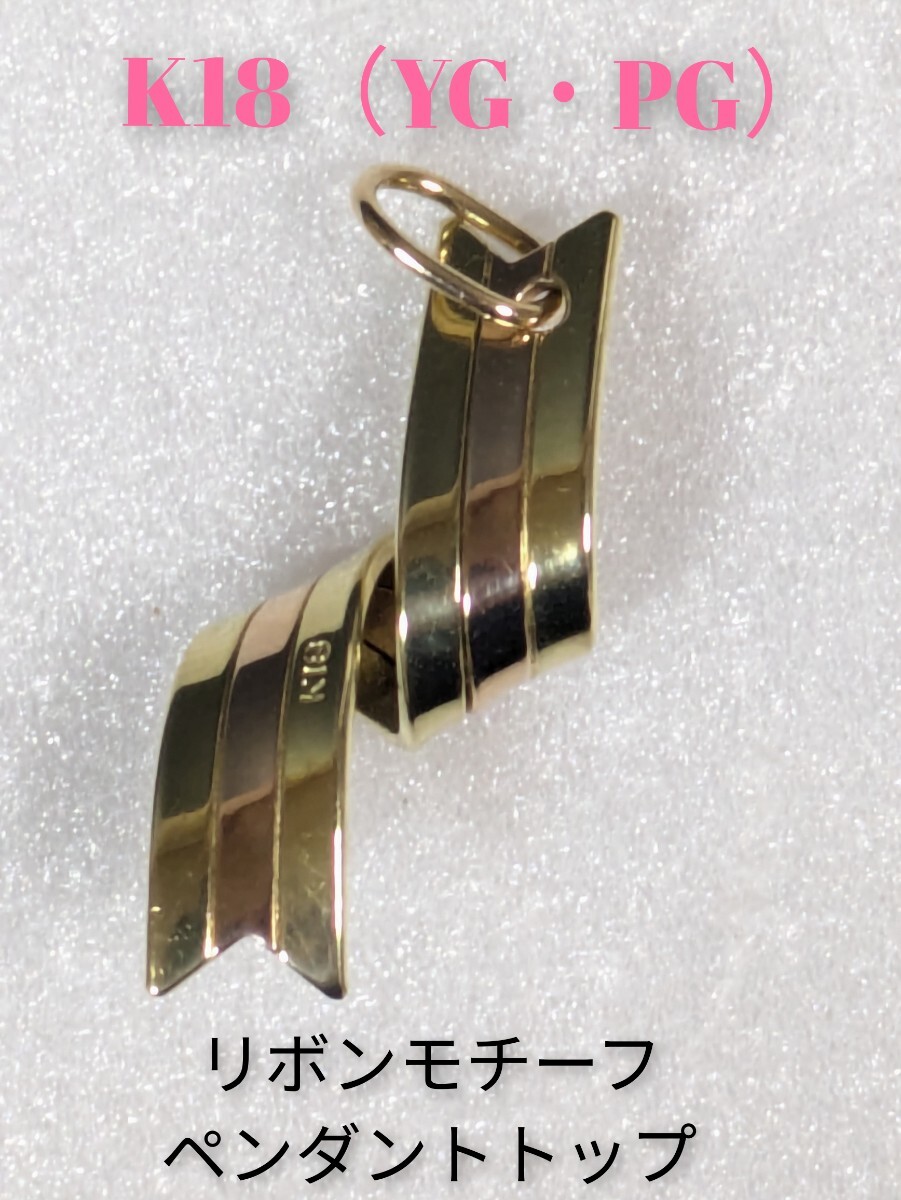 - K18(YG・PG) リボンモチーフ ペンダントトップ
