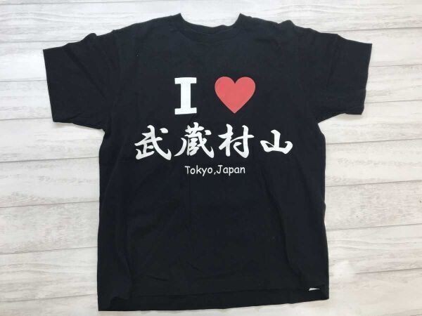 > I LOVE 武蔵村山 東京都武蔵村山市 ご当地 お土産 スーベニア 漢字プリント へビーウェイト Trysail製 半袖Tシャツ メンズ 綿100% S 黒