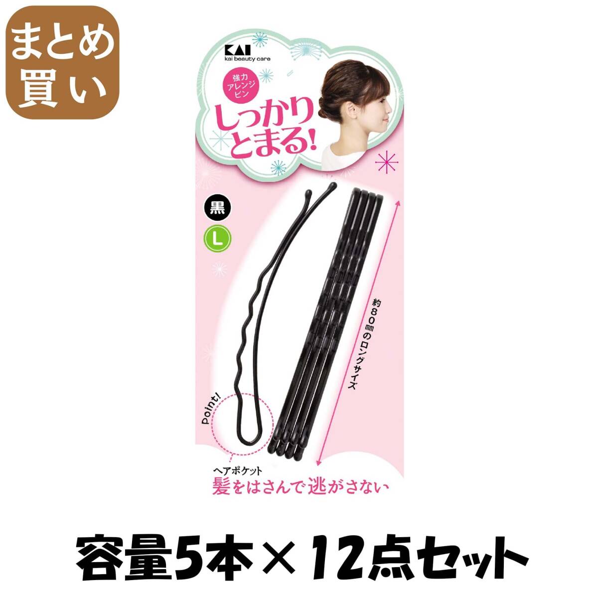 - 【まとめ買い】KQ3119強力アレンジピンL黒 容量5本×12点セット 貝印 スタイリング