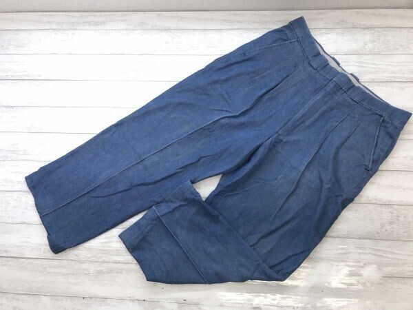 - PERSONAGE LONDON レトロ オールド スポーツ タック センタープレス 刺繍 ワイド トラウザーズ パンツ ボトムス メンズ 日本製 91 青