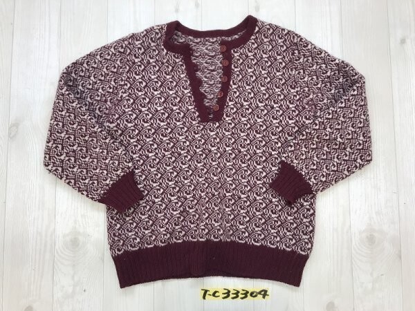 - メンズ 総柄 ハーフボタン ウールセーター エンジ