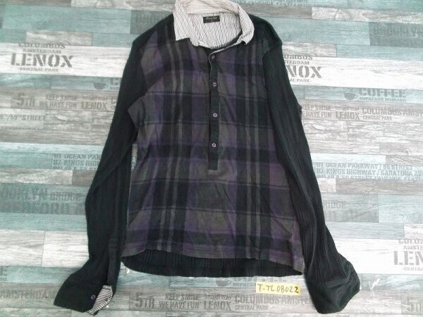 - MEN'S BIGI メンズビギ ハーフボタン チェック柄 長袖ポロシャツ 03 黒紫