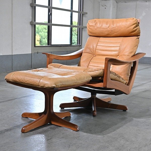 - 北欧ノルウェー LIED MOBLER リクライニングチェア チーク無垢材 オットマン 本革 1人掛けソファ ラウンジ リードモブラー リビング 寝室
