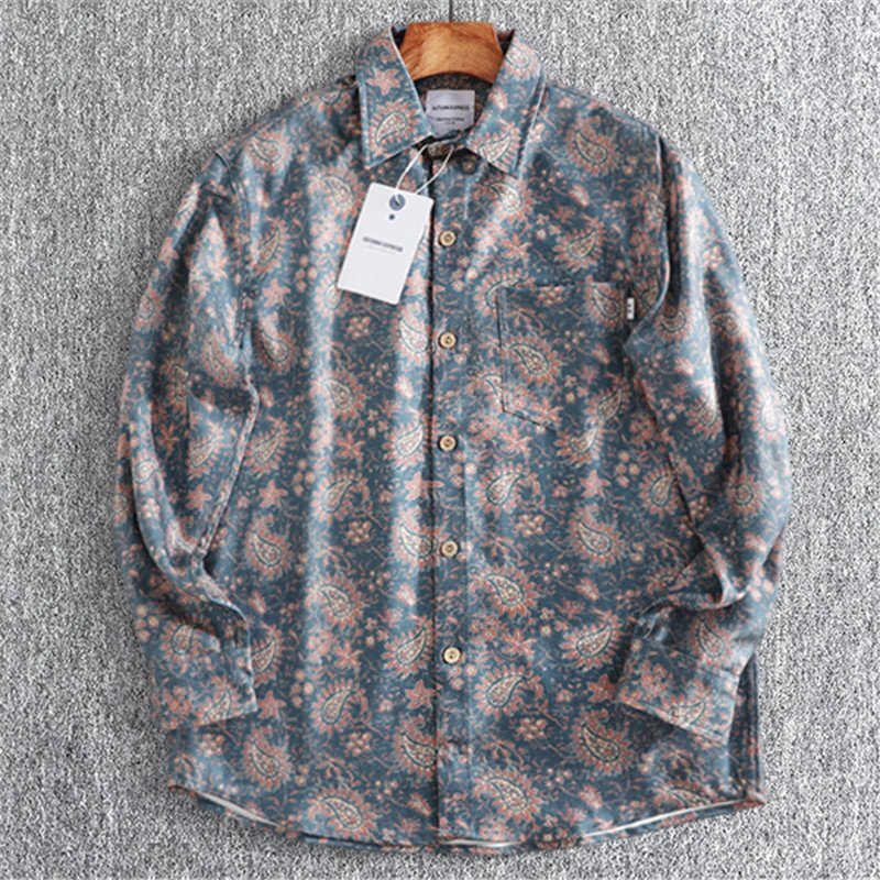 - 新品 DCKMANY 長袖シャツ ペイズリー柄 メンズ オックスフォード 春秋 紳士 総柄 ボタンダウン ゆったり 胸ポケット カジュアル T8900-M