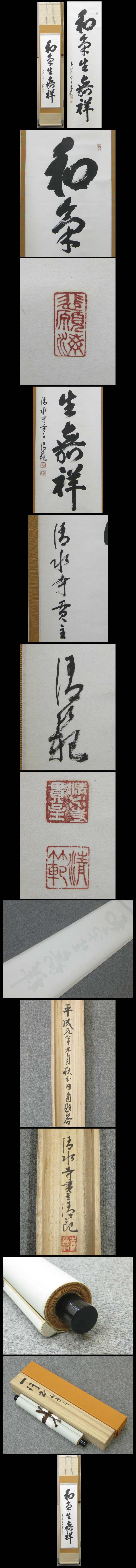 - 【心庵】掛軸 清水寺管長 森清範 紙本「和気生嘉祥」一行書/肉筆 共箱 真作 今年の漢字 A888