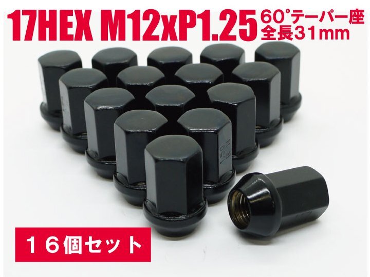 - ラグナットDK 16個入 17HEX M12xP1.25 60テーパー座 【ブラック】ニッサン スバル スズキ