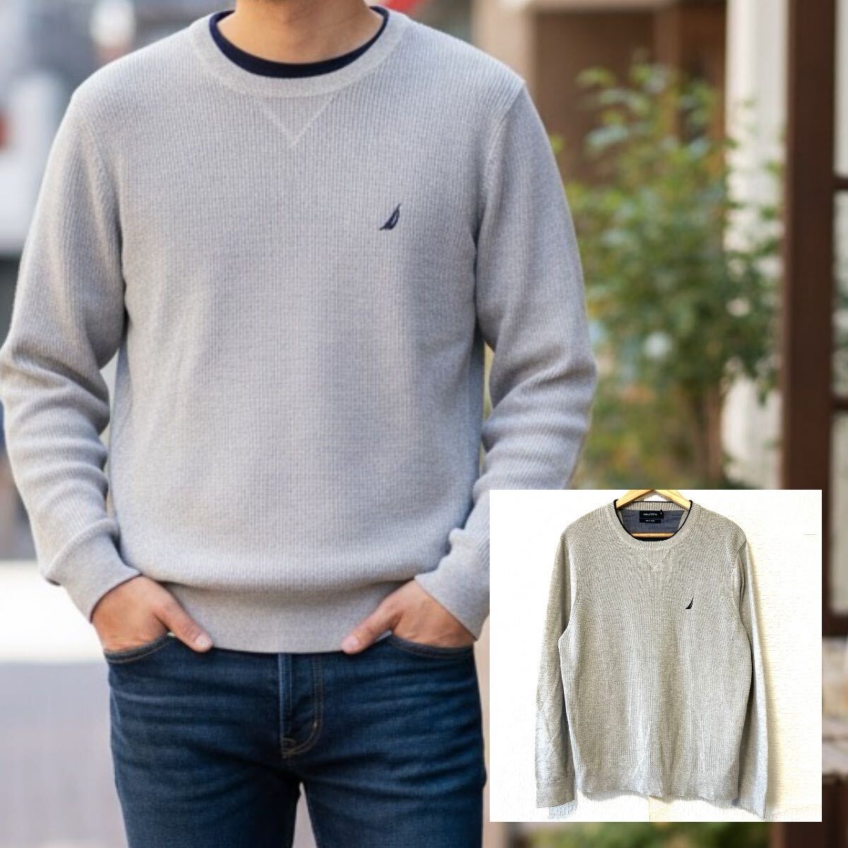 - 状態良好◎【NAUTICA】ノーティカ クルーネック ニット セーター 長袖 Vガゼット アメカジ お洒落 カジュアル グレー メンズ M/Y37507UU