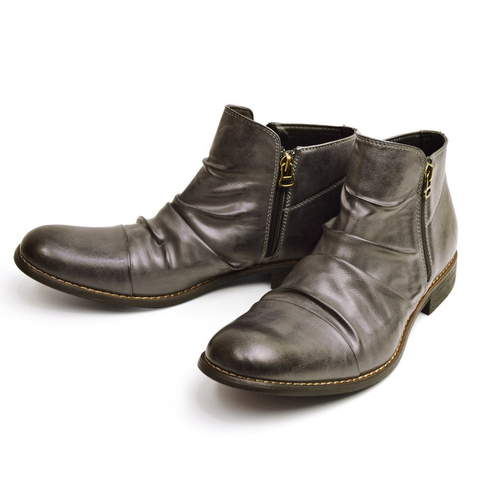 - 新品■28cm Wサイドジッパー ドレープブーツ チャッカブーツ アンティーク ブーツ ショートブーツ メンズ キレイめ ビンテージ 男 靴