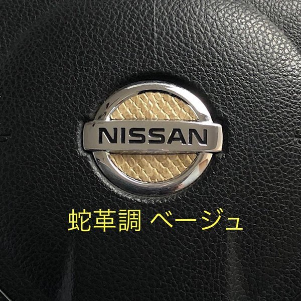 - 日産 ステアリング エンブレムシート 蛇革調 ヘビ革調 ベージュ SDH-N01 ハンドル ZEROWIN NISSAN 簡単取付け ドレスアップ 送料無料