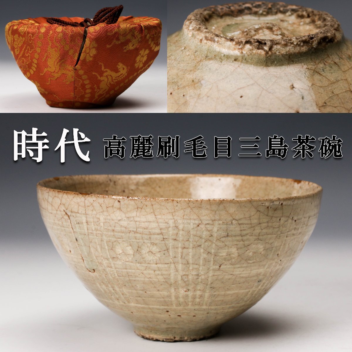 【佳香】時代 高麗刷毛目三島茶碗 木箱 仕覆 茶道具