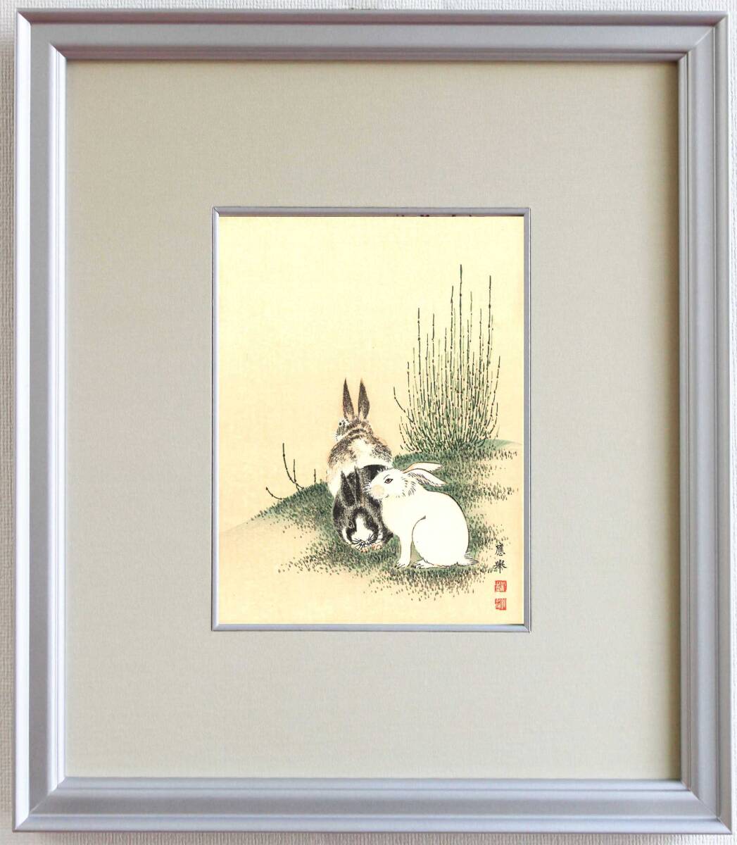 - 真作保証 額装 円山応挙 木版画 木賊と兎 初版 明治期 明治期の原版木を使用し京都の名摺師が手掛けた最高作品!!