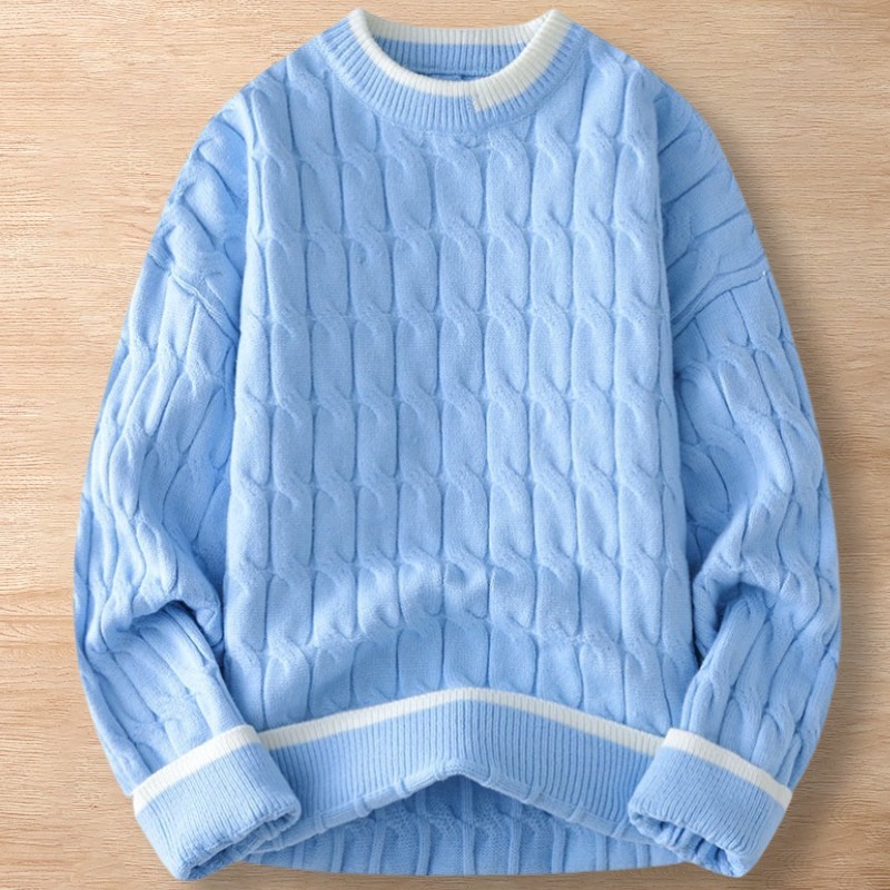 - Y090-L ブルー 新品DCKMANY ウール混 ケーブル編み ニットセーター 配色 トップス 厚手 暖かい メンズ プルオーバー ラウンドネック