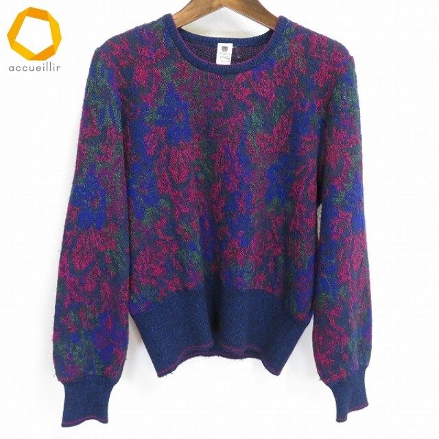 - #w ウンガロ Ungaro ニット セーター 11号 紺 赤紫 マルチ 花柄 ウール混 ヴィンテージ vintage レディース [948068]