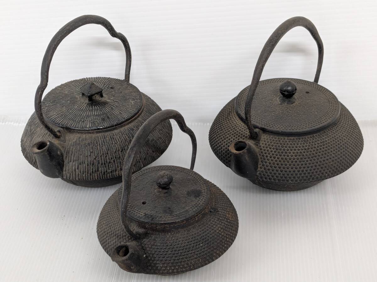 - 【 3点セット 】 南部鉄器 急須 岩鋳 鉄瓶 高さ 約15㎝ 約15㎝ 約12.5㎝ 取っ手含む 鉄製 茶器 茶道具 煎茶道具 鉄器 茶瓶 工芸品 (☆40)