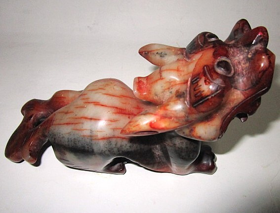- 稀少 アンティーク★中国 古玩 麒麟 獅子 龍 彫刻 ネフライト 天然石 パワーストーン 置物 オブジェ 重量660g★《検》和田玉