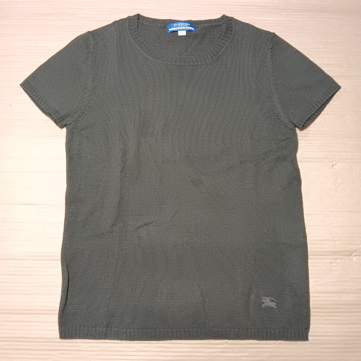 > 〇 BURBERRY BLUE LABEL バーバリー ブルーレーベル 半袖 ニット レディース カーキ Mサイズ FBF90-679