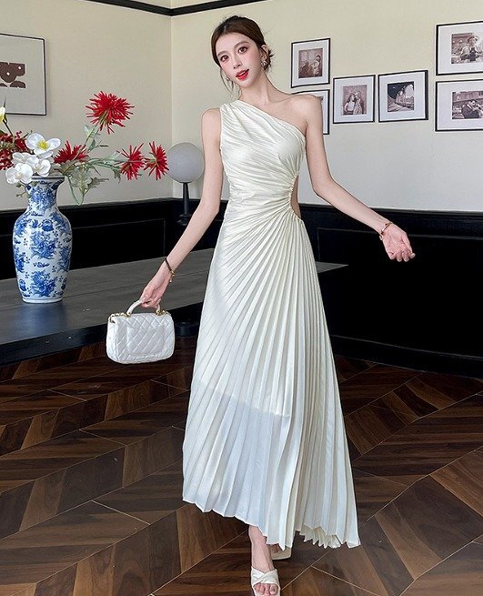 - ロングワンピース フリルワンピース 袖なし ノースリーブ キャバクラドレス L オフホワイト