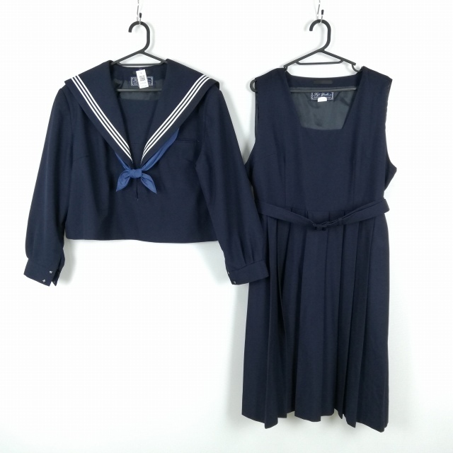 - 1円 セーラー服 ジャンパースカート 上下3点セット 大きいサイズ 特大 富士ヨット 冬物 白3本線 中学 高校 紺 中古 ランクB EY5506