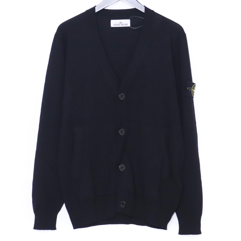 > STONE ISLAND ワッペンパッチVネックウールカーディガン Mサイズ ブラック 7715511C4 V0029 ストーンアイランド Wool V-Cardigan