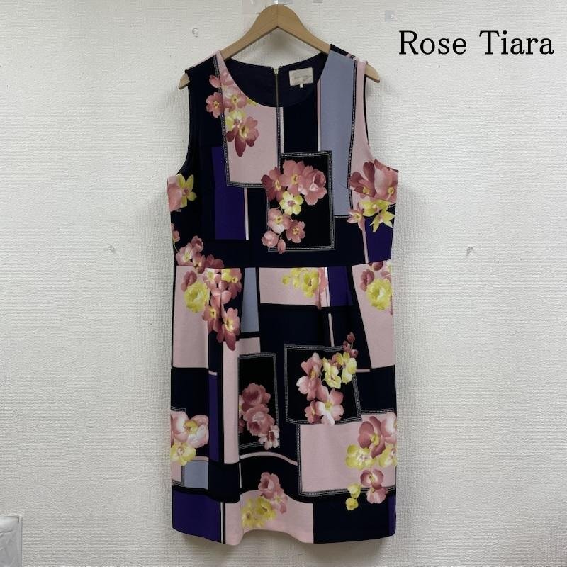> ローズティアラ ノースリーブ ワンピース ひざ丈 花柄 総柄 マルチカラー 幾何学 Aライン チュニック 背面ジップ 46