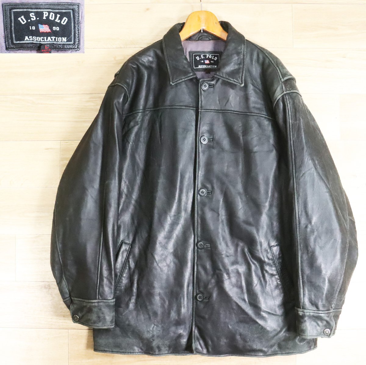 - *10K/Y6.2-12 U.S. POLO ASSN ポロアッスン レザーコート レザージャケット 本革 レザーカーコート ブルゾン ブラック L