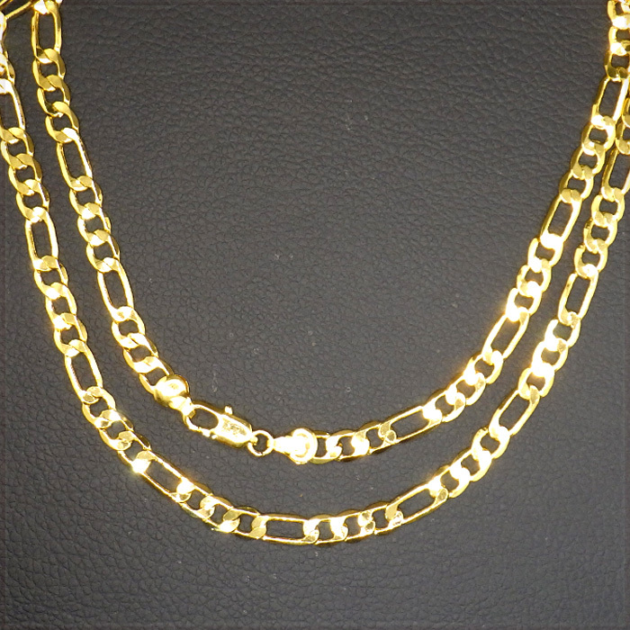 > [NECKLACE] 24K GOLD PLATED FIGARO CHAIN 6面カット フィガロチェーン ゴールド ネックレス 6x500mm (16g)