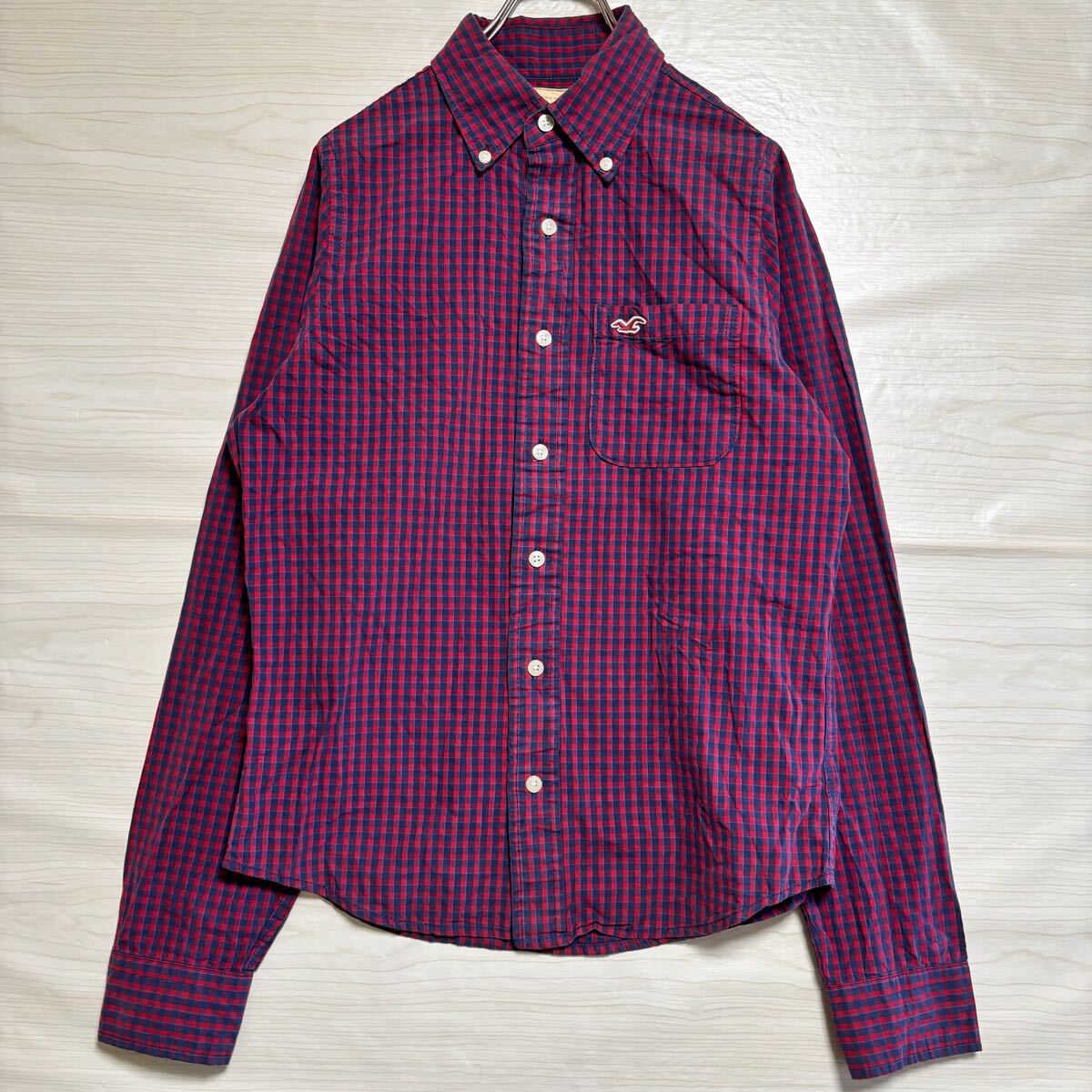 > HOLLISTER ホリスター 長袖シャツ チェックシャツ 胸ポケット ワンポイント ロゴ刺繍 サイズS レッド 赤 コットン メンズ トップス(41)