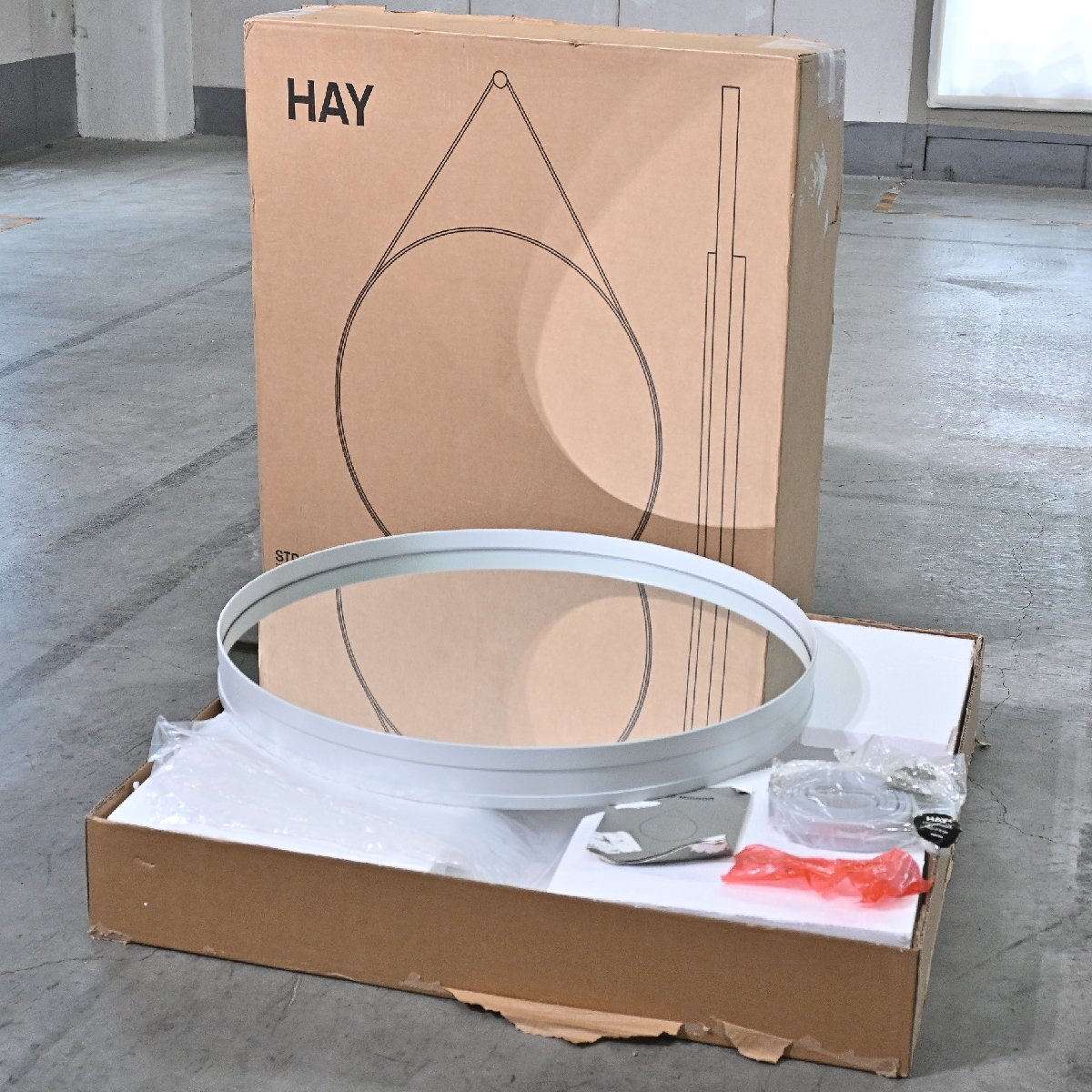 > 廃盤 新品 未使用 HAY 8万「STRAP MIRROR」壁掛け鏡 A ストラップミラー ラウンド 丸 円 化粧 リビング ダイニング 玄関 ヘイ_アクタス
