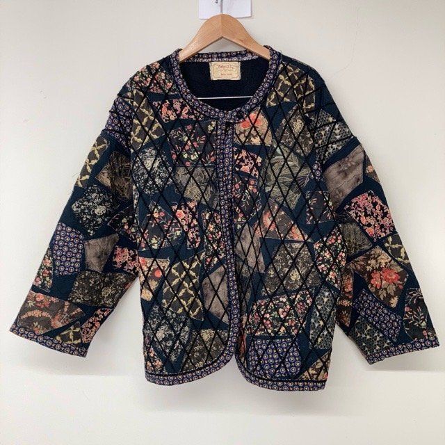 > B696 ボビースミス L アメリカ古着 パッチワーク キルティング 長袖 ジャケット ネイビー Bobbie Smith レディース