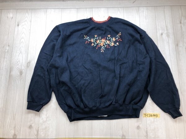 > top stitch BY MORNING SUN レディース 花刺繍 裏起毛 スウェットトレーナー 大きいサイズ 3XL 紺オレンジ
