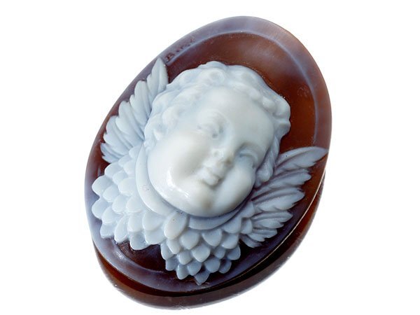 > 【ジュエリー極】作家品 サイン刻印有 エンジェルの彫刻 シェルカメオルース 35.4mm×27.2mm a2837o【送料無料】