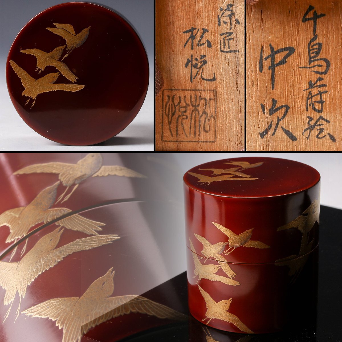 【佳香】渡辺松悦 千鳥蒔絵中次棗 共箱 茶道具 本物保証拍卖