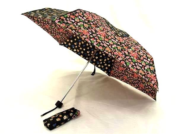 - ■美品■ COACH コーチ 花柄 3段折り 折りたたみ傘 折り畳み傘 高級傘 アンブレラ 雨具 ブラック系×マルチカラー DI6511