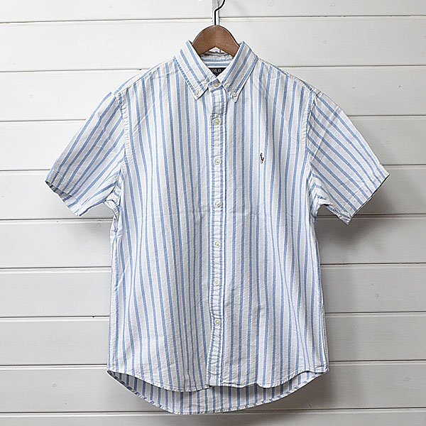 - ポロラルフローレン 半袖 ストライプ BDシャツ M ホワイト ブルー POLO Ralph Lauren|25j2108