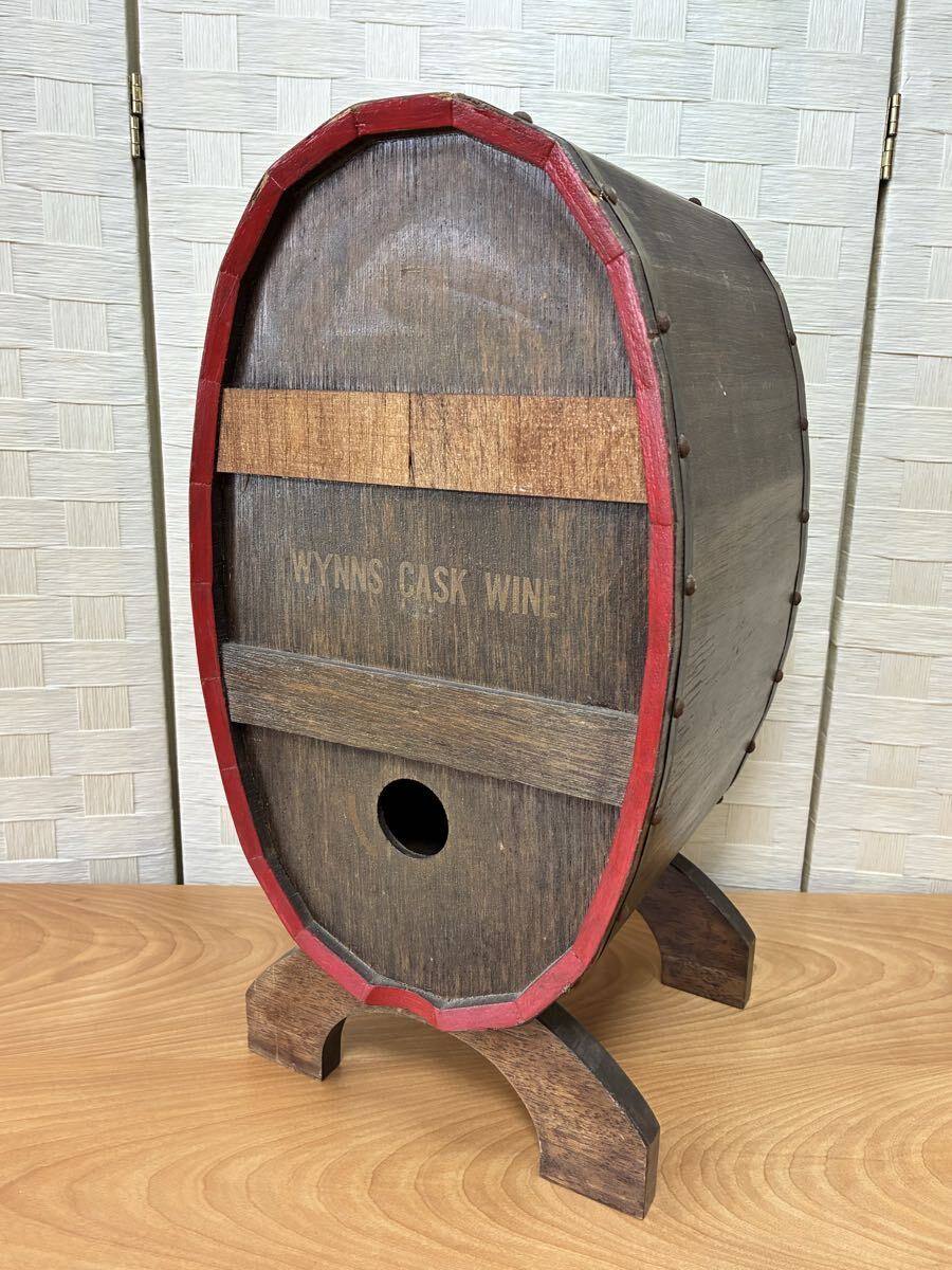 > 空樽「WYNNS CASK WINE」、木製樽型容器、カスクワイン(箱ワイン)の容器、※蛇口なし木に傷みあり、アンティーク、ヴィンテージ好き