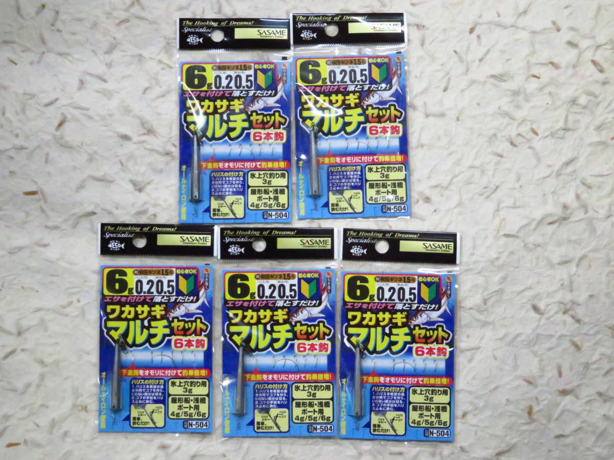 > ★特価★ ささめ針 ワカサギマルチセット 6本鈎 秋田キツネ1.5号 6g N-504 5個セット 新品 ワカサギ仕掛け ササメワカサギ 6本針
