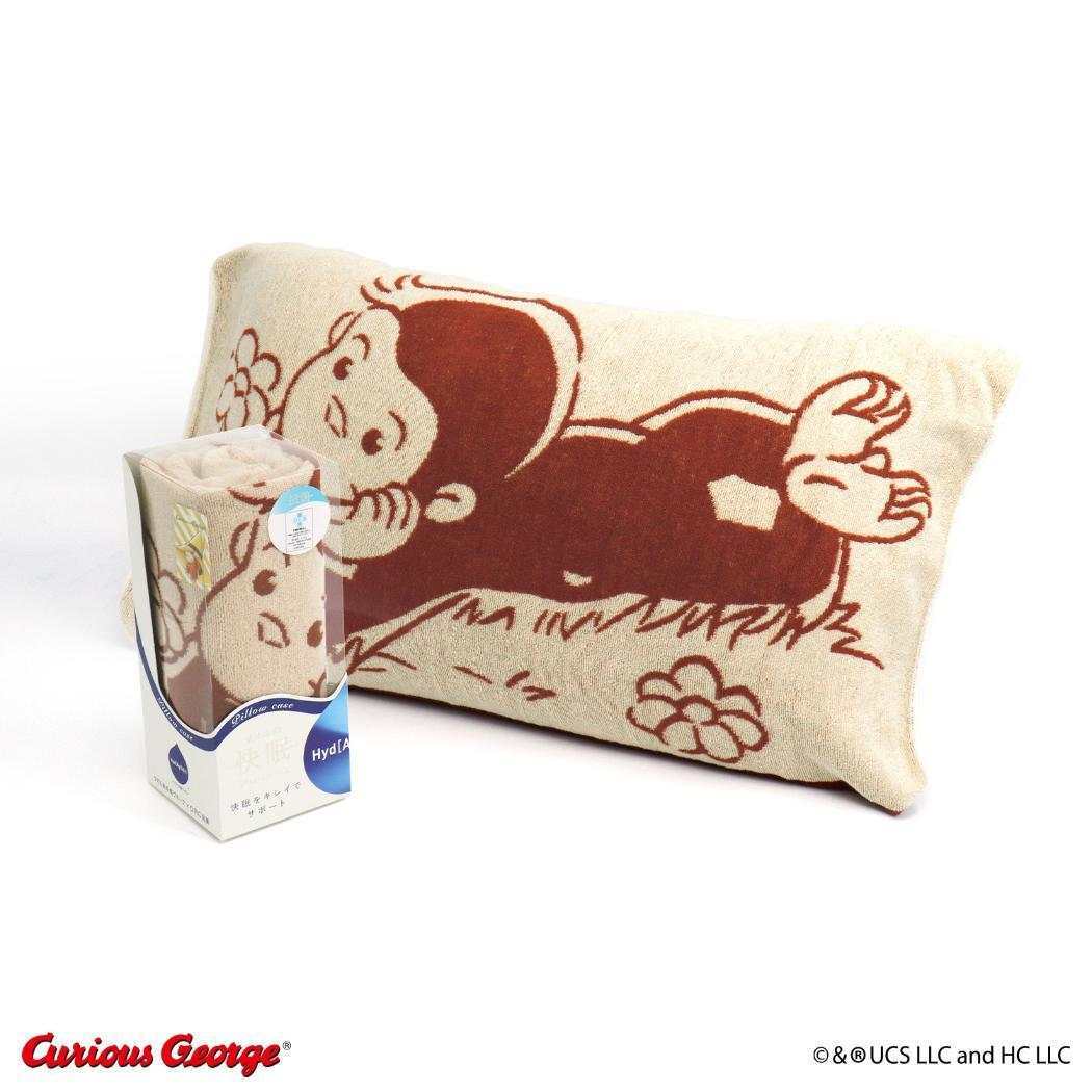 - おさるのジョージ 枕カバー フルフィーコットン のびのびピローケース 花とおひるね タオル美術館 プレゼント 絵本キャラクター グ