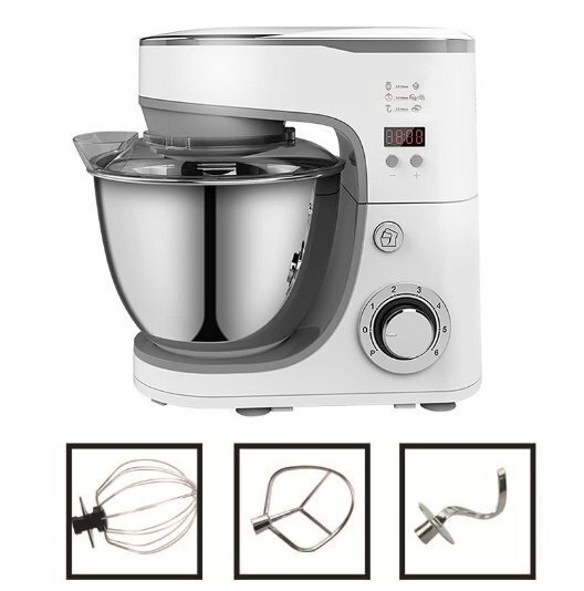 - スタンドミキサー 5L大容量 3種類アタッチメント付き 低騒音 6段階スピード調節 タイミング機能家庭用 業務用 こねる ミキサー 電動 お菓子