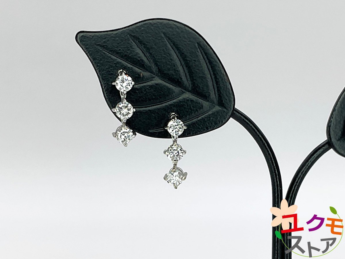 > 【送料無料】K14WG ダイヤモンドピアス 総合計D0.5ct 4月誕生石 ホワイトゴールド スイングピアス ポストピアス