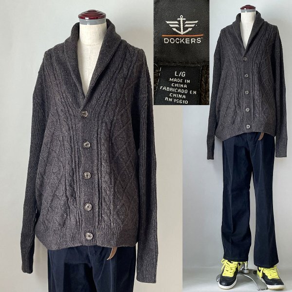 - ★【デザイン&雰囲気◎ 名作】 DOCKERS ドッカーズ ポリエステル アクリル ウール ショールカラー ミドルゲージ カーディガン L ブラウン