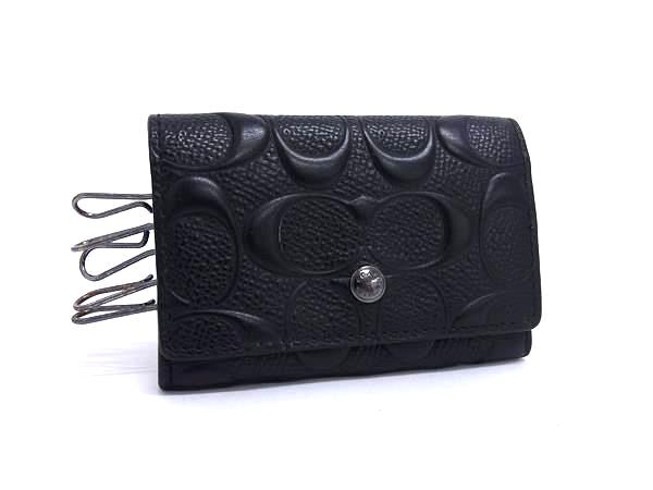 > COACH コーチ F76986 シグネチャー レザー 5連 キーケース 鍵入れ メンズ レディース ブラック系 DH8681