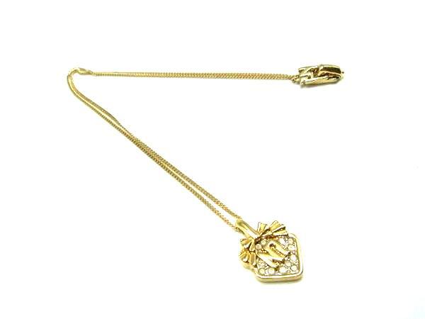 > NINA RICCI ニナリッチ ラインストーン リボン ネックレス ペンダント アクセサリー レディース ゴールド系 DK4796