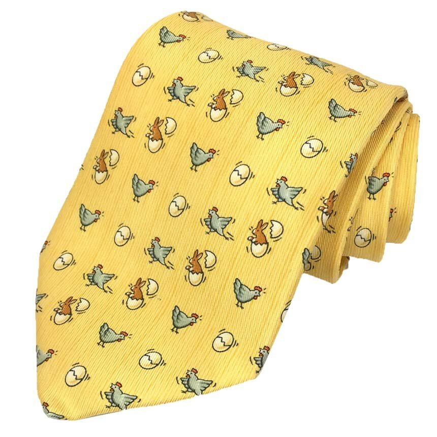 - ゆうパケット発送 セール 全国送料無料 HERMES エルメス ネクタイ にわとり たまご うさぎ シルク イエロー aq11559
