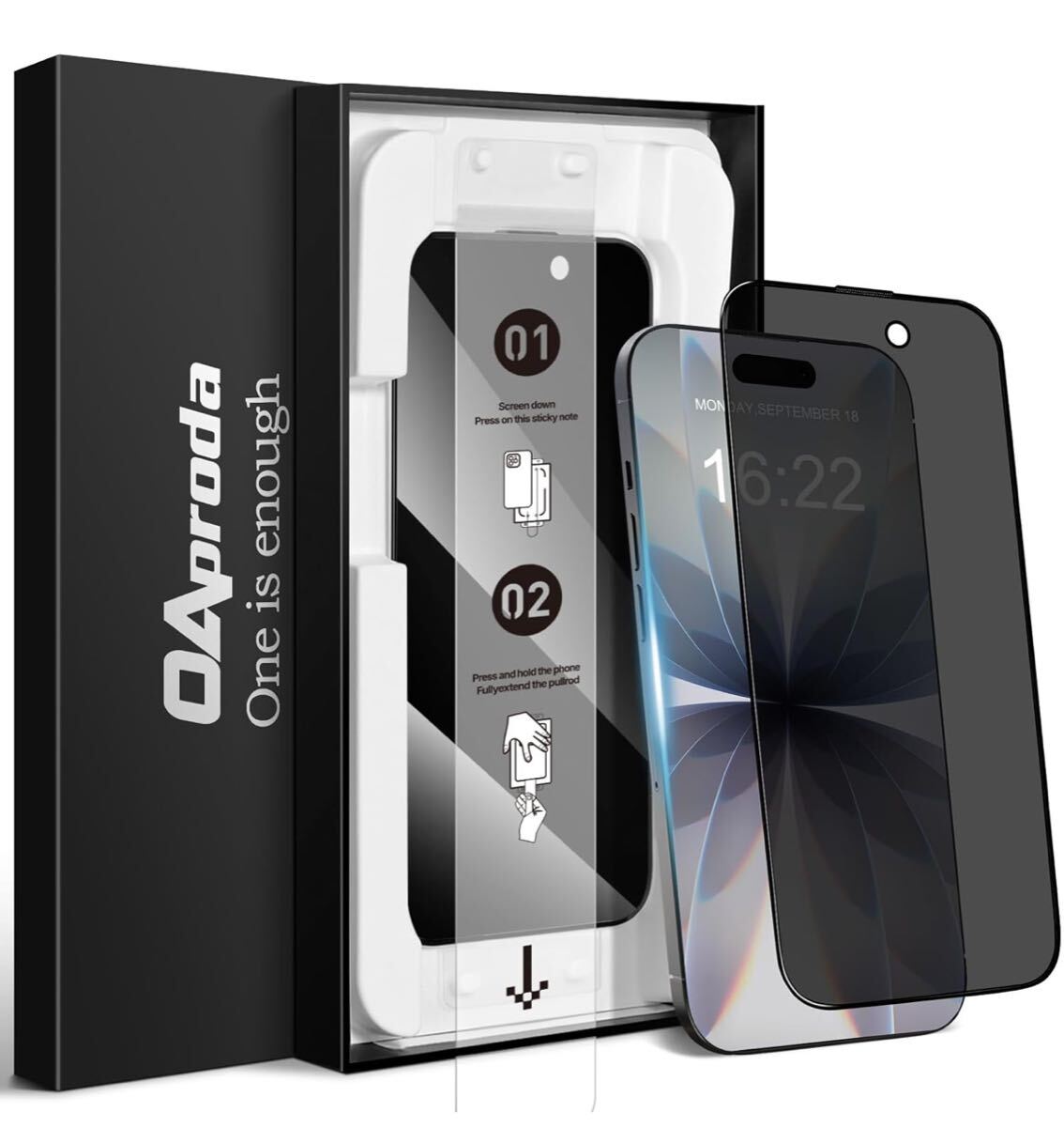 - 覗き見防止・新型ガイド枠 iPhone 17/16Pro用 ガラスフィルム 覗き見防止 超簡単貼り付け プライバシー のぞき見防止 いPhone17 16pro
